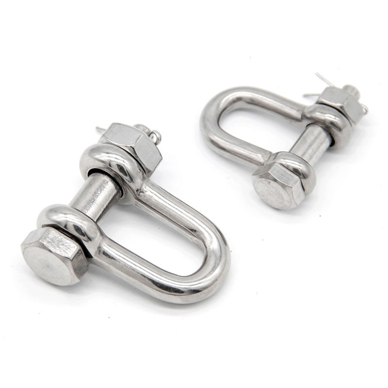 สแตนเลสแรงงานตรง D-ring shackles ปกติจะทําจากสแตนเลส, ซึ่งเป็นกันสนิม, ทนต่อการสวมและความแข็งแรงสูง. วัสดุของมันสามารถเป็นสแตนเลสคาร์บอน, สแตนเลส,สแตนเลสสแตนเลสความแข็งแรงสูง เป็นต้น แบ่งออกเป็นสองประเภท: การใช้ในทะเลและที่ดิน, ใช้อย่างแพร่หลายในการก่อสร้าง, ท่าเรือ, พลังงาน, เรือและอุตสาหกรรมอื่น ๆ